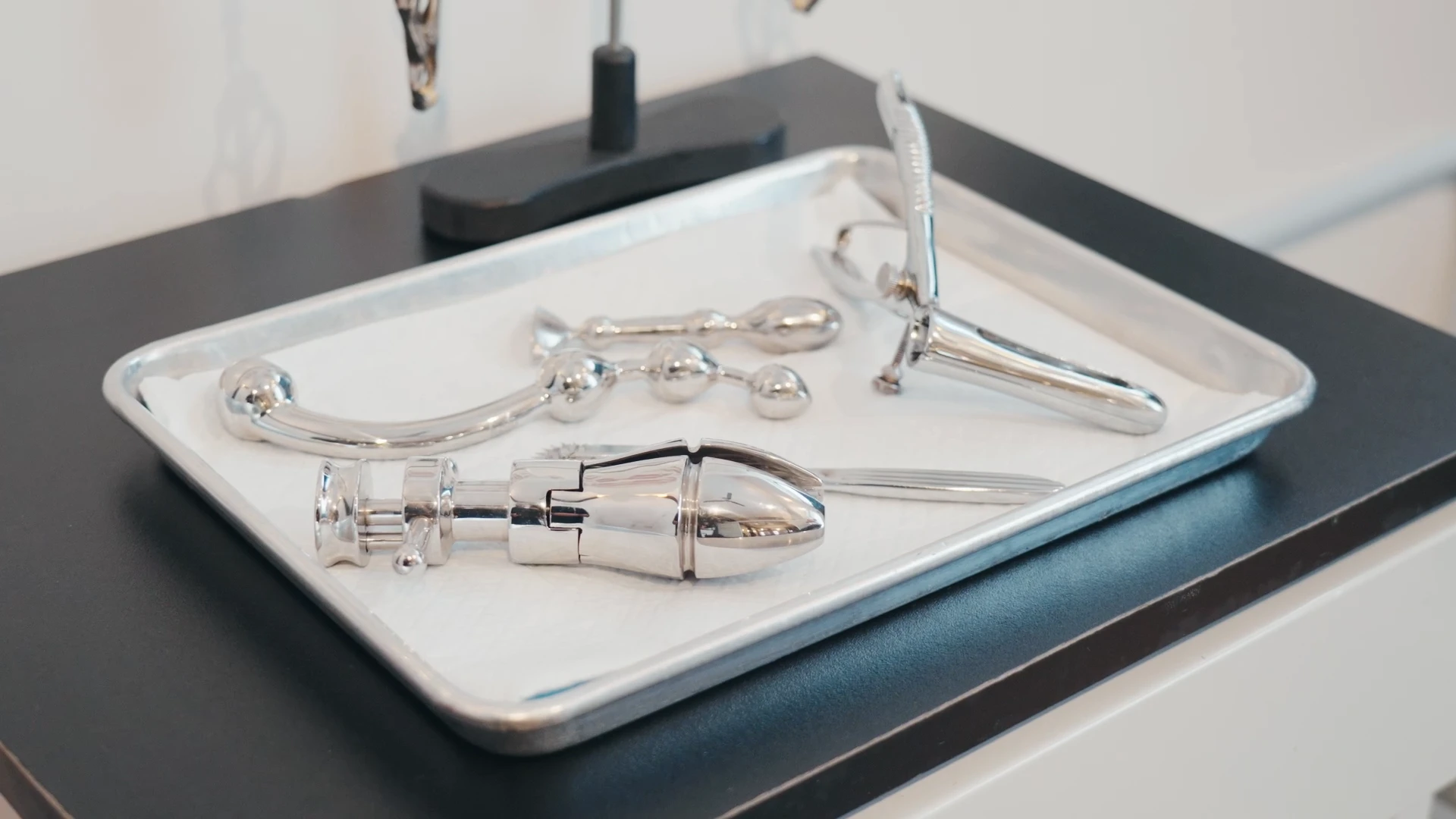 Анальный расширитель и игрушки для анальных игр (металлические и стеклянные) – в белом медицинском шкафу