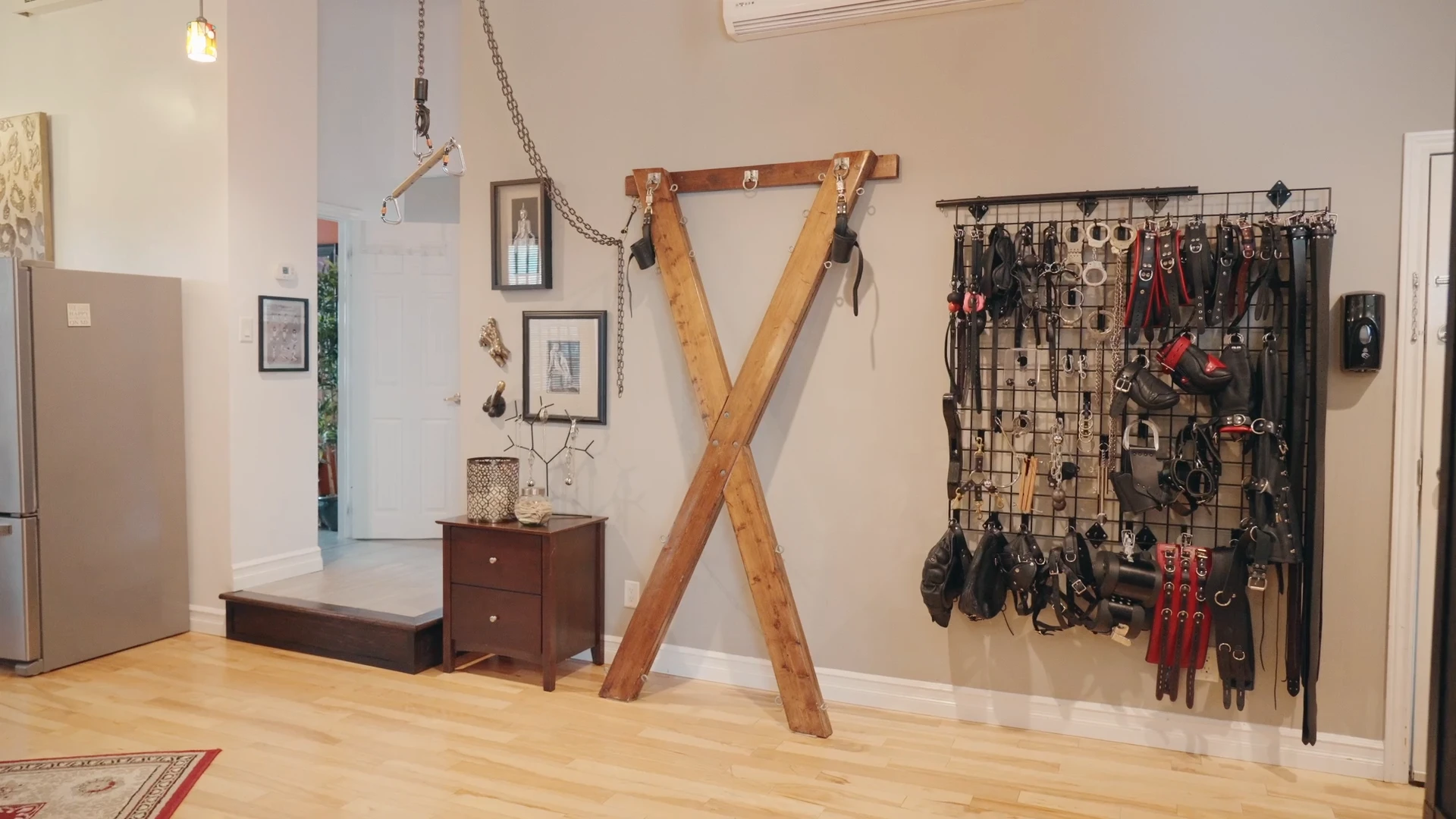 Хорошо оборудованная и полностью меблированная, она предлагает множество приспособлений для БДСМ и широкий выбор высококачественных игрушек и инструментов.